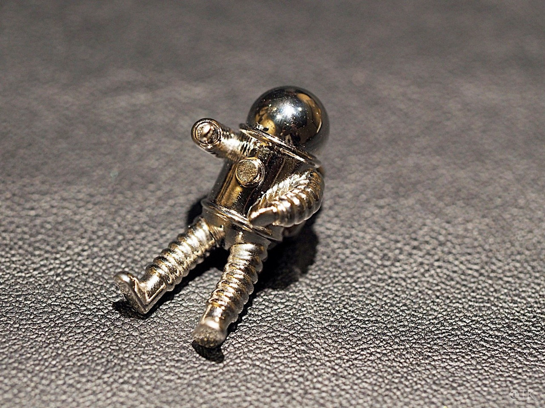 Just like on the launch pad of the MB&F Caran d’Ache Astrograph Pen released last year, there is also a small astronaut that comes with the clock, called Neil (not Tintin). Clad in a space suit of silver and stainless steel, he has a magnet at the front which allows for him to be attached to the ladder connecting the crown to the movement.