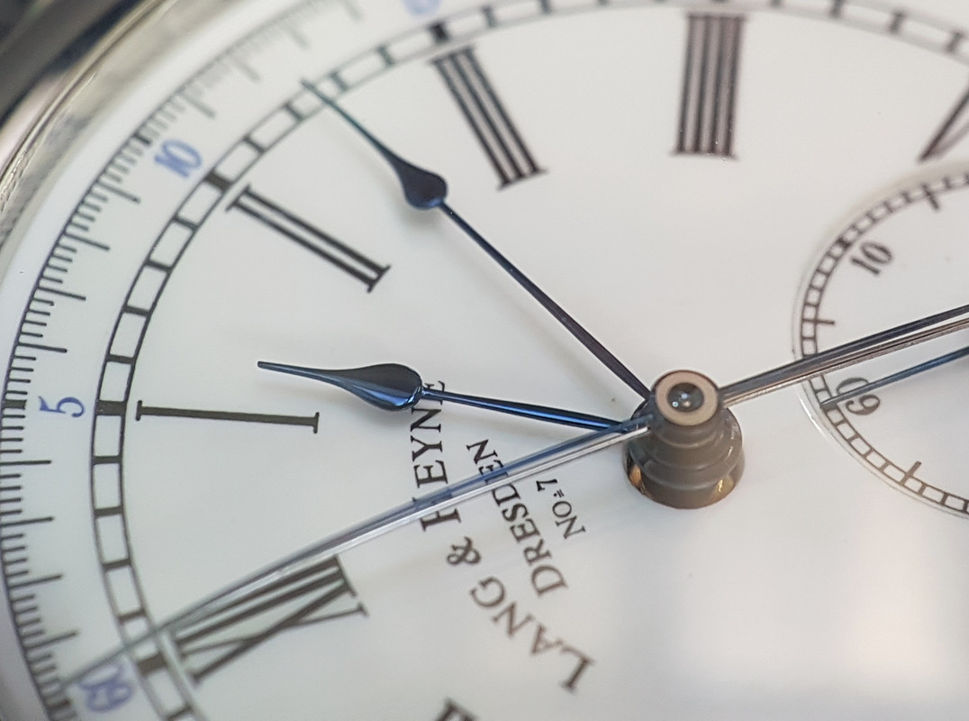 Dresden watchmakers Lang & Heyne basically quietly do their own thing, creating a scant few dozen watches a year in a small number of models. You may recall an earlier post on Horologium about a special Friedrich III. Well today, we bring you the Lang & Heyne ‘Albert’, named after King Albert of Saxony, with a similar Roman numeral and enamel dial, but with some design differences and a extra complication – a monopusher column wheel chronograph.