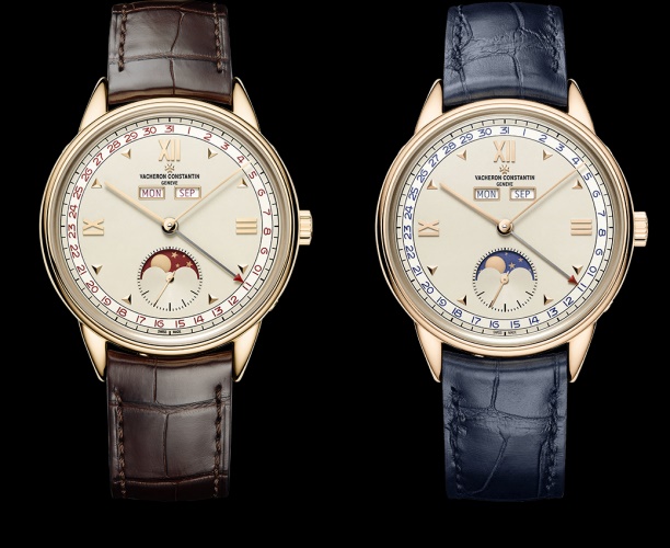 So what do they share in common? Well they are both are derived from designs of the the 1940s (as their names state), with 40mm round cases are characterised by triple gadroon (decorative edging formed by parallel rounded strips) case bands, and are manual-wind. As their name states, they both feature triple calendars. They are also both available with either burgundy or dark blue accent options.