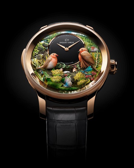 In the modern era of watchmaking it is unusual for a brand to have, as one of its best known (ongoing) horological creations, a piece involving an automaton. There are some independent watchmakers such as Svend Andersen who are renowned for their skill in this highly specialised field, and brands such as Van Cleef & Arpels who have become known for their creative use of ‘poetic complications’, but a standout in this niche is that of Jacquet Droz’s Bird Repeater.
