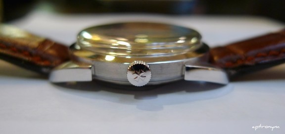 When I first saw this watch (which has some signs of age discolourisation on the dial) I admit that it didn’t grab my attention in quite the way that it grabbed its owner’s, but as I spent some more time looking at it, in reading about the history, and in looking back at the photos, I was struck foremost by how much I missed in terms of appreciating the design of the case and secondly, of its historical interest as a timepiece. I suspect I’d like it a bit more if it didn’t have the diamond, which I find a bit incongruous.