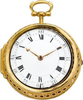 I have already blogged about one interesting ‘watch’ that is up for auction at Heritage Auctions. Here is another item from the same collection. It could not be more different to the spy watch, but it is also historically interesting, albeit in a completely different (and definitely more horological) way.