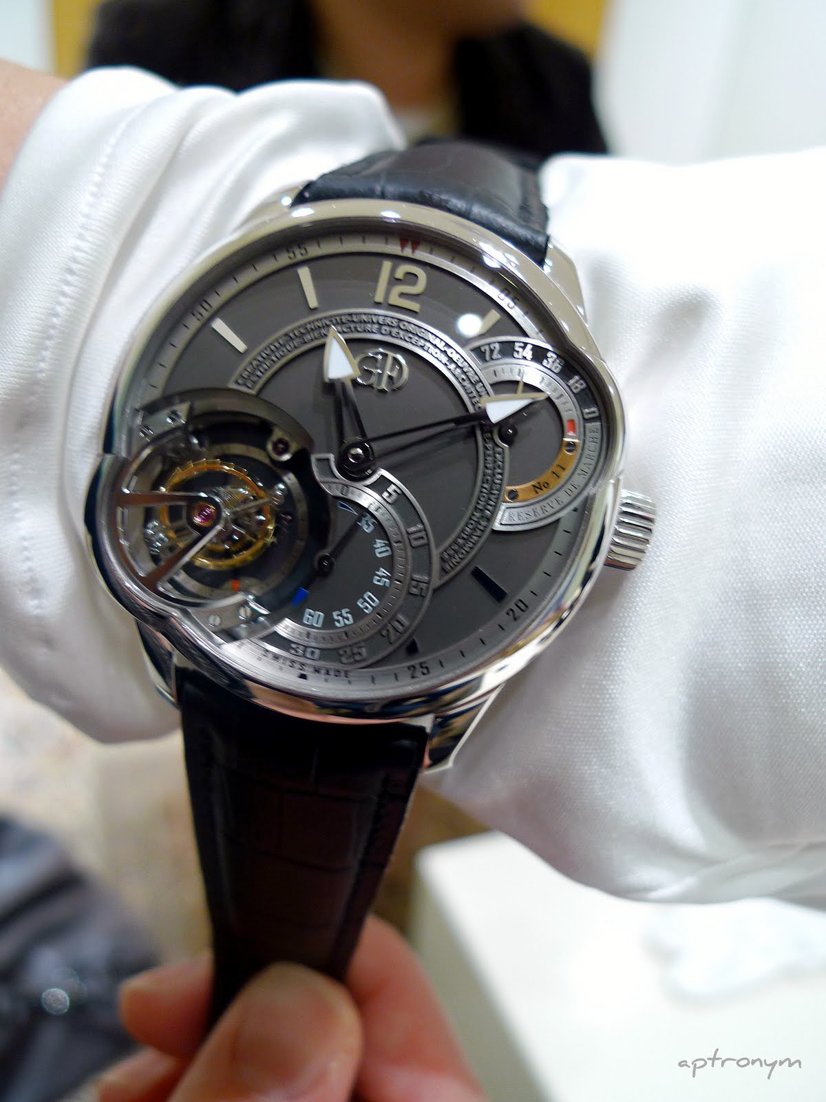 Tourbillon 24 Secondes (T24S) in platinum. Unexpectedly light, despite its 43.6mm size and my favourite, although I would probably prefer a little less text on the dial.