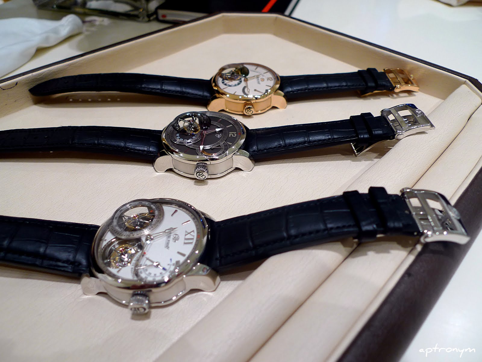I admit that in trying to get my head around all the technical aspects of GF’s tourbillon feats before this morning, and even with his explanations, I couldn’t achieve a state of full clarity, but that didn’t detract from my ability to admire the technical feats and the beauty and astonishing finishing (which really needs to be examined under a loupe to be fully appreciated) of these watches. Whatever you may feel about tourbillons in general, or having multiple tourbillons, there is no denying the sheer beauty of these timepieces.
