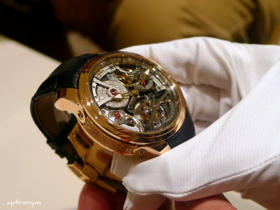 Next up was the Tourbillon 24 Secondes Incliné (T24S) in rose gold with silver dial. One of their more understated watches, the Tourbillon 24 Secondes Incliné uses a single ultra-light inclined tourbillon cage rotating to achieve high angular velocity.