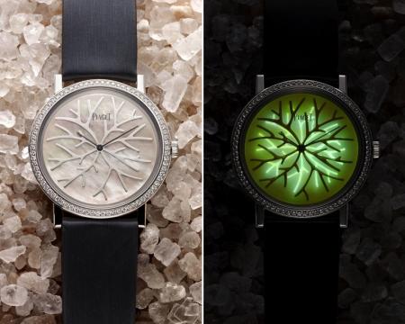 What surprised me was that I hadn’t expected to like this piece, but I did. There was something enchanting about it. I am not one for watches with diamonds, nor are diamond bedecked pieces of whimsy the things which appeal to me most. My tendency is towards watches that are functional and low key, and the Altiplano is more my type of watch. In spite of this, somehow Piaget have managed to come up not only with this jewellery watch that I was quite drawn to, but also the only women’s watch in recent years that I have fallen for, the Tropical Seas Altiplano. Luminescent coral dial in a white gold case and the Piaget Caliber 430P manual movement. I love this watch.