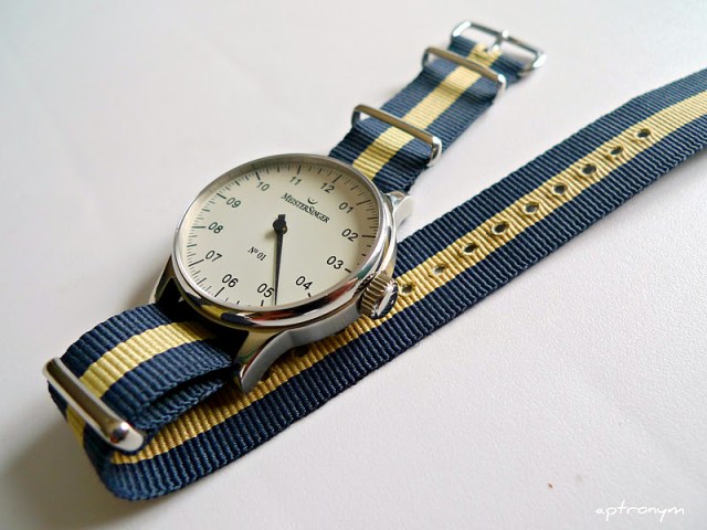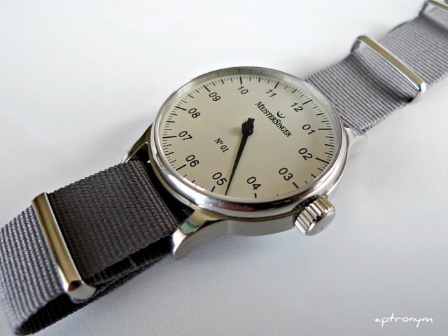 I have a fondness for MeisterSingers, and own two of them. My first was this No.1, which I purchased about four years ago. Unfortunately, my interest in wearing it has waned in the last year, and after failed attempts to find a suitable new leather strap in an attempt to recapture the desire to wear it, the penny dropped – what I needed was a NATO.