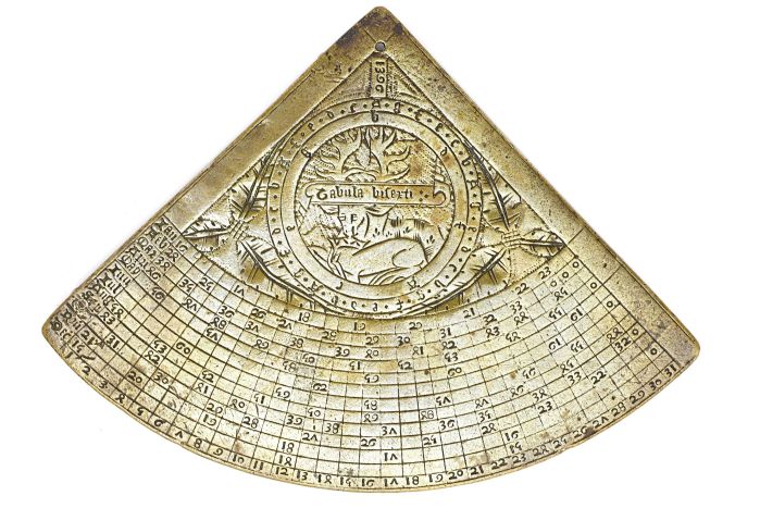 On its reverse, the quadrant features a badge depicting a prone stag with a coronet around its throat, a symbol associated with Richard II. The tables on the back of the quadrant give the height of the sun at midday throughout the year.
