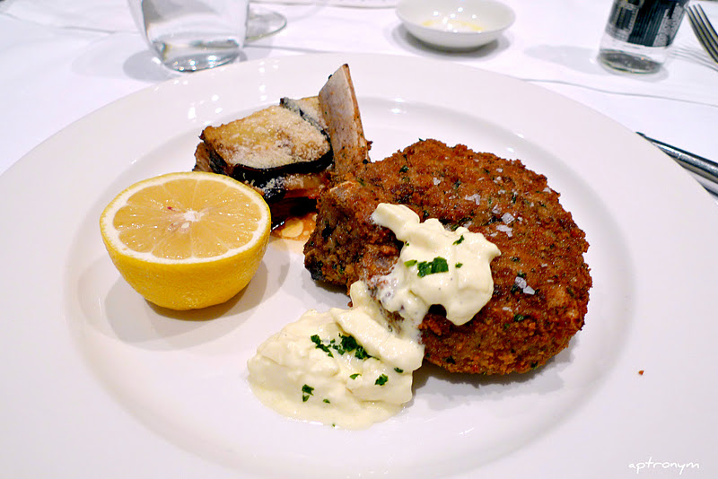 Crumbed veal cutlet with eggplant parmigiana and ‘crema di burrata’ $37