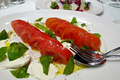 Simple sweet flavours of good tomatoes, plenty of basil, good buffalo mozzarella.