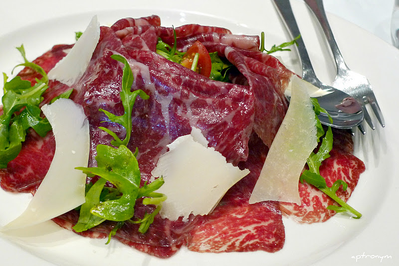 Unfortunately, because I was so distracted by trying talking and watches, I only managed to get one slice of the bresaola. Suffice to say that I wish that there’d been more of this smooth, rich charcuterie.