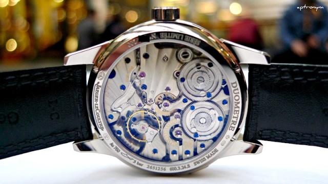 Introduced in 2007, the basic idea is to separate the normal time keeping function of the watch (hours, minutes, and seconds) from the other function, hence ‘duo’. Traditionally, in a watch with a complication the latter makes the watch’s rate deviate upon its activation e.g. a chronograph as it is switched on, a repeater as it rings, or even a calendar function ticking over. The functions share a common power source – the activation of the complication will lead a reduction in the time function of the watch, due to the use of power, and affect accuracy.