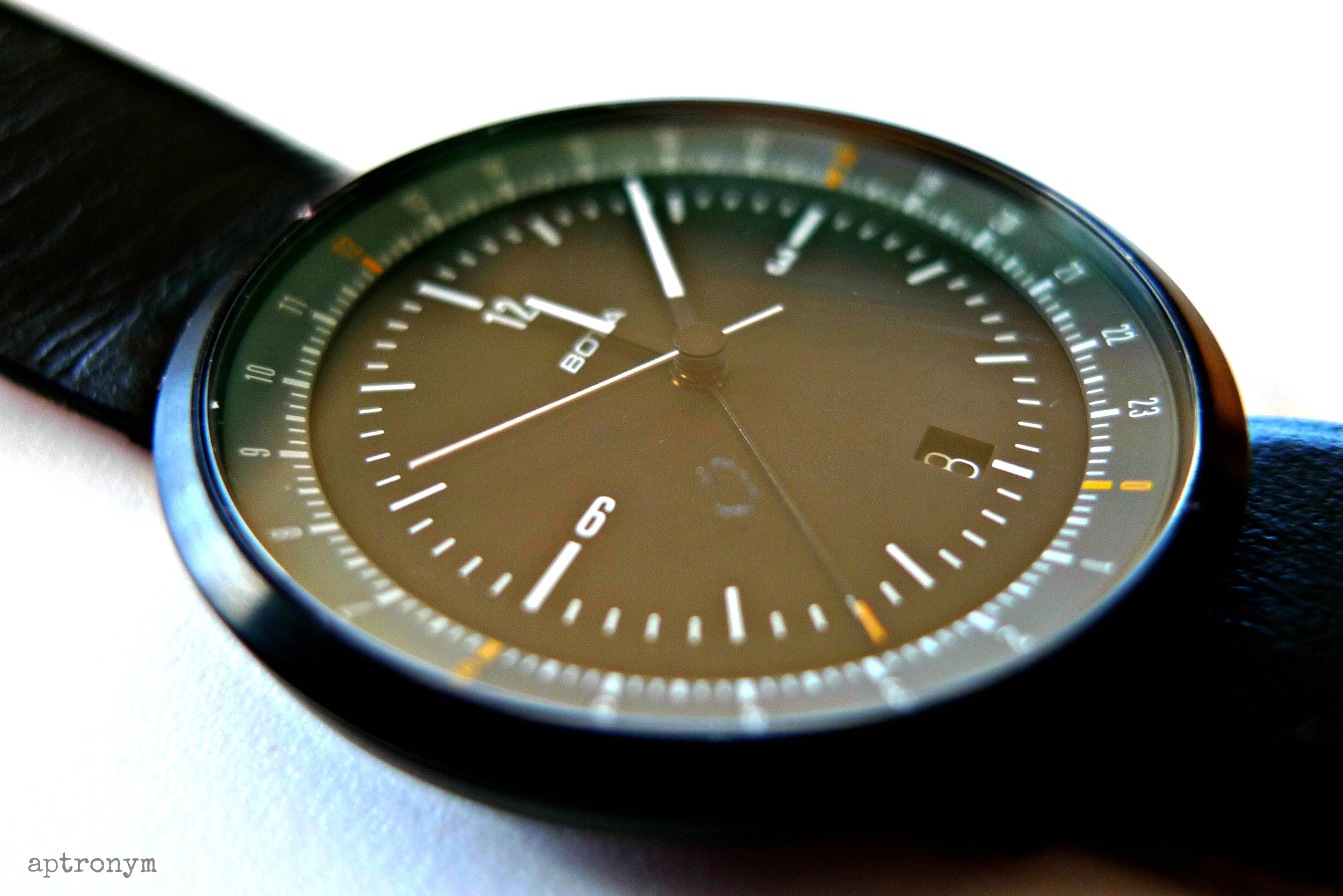 One of the very things that appealed about this watch turned out to be one of its shortcomings for the original owner. The slim markers and hands were not a problem, but the second time zone marker, with a very discreet orange tip, is not as legible at first glance as it could be. If you wish to be able to rapidly identify your second time zone, this is not the watch for you. It’s not illegible, but it’s not recommended for people who need something bold and clear, and the photos on the Botta website don’t really give a good ‘working’ level indication of this hand’s legibility.