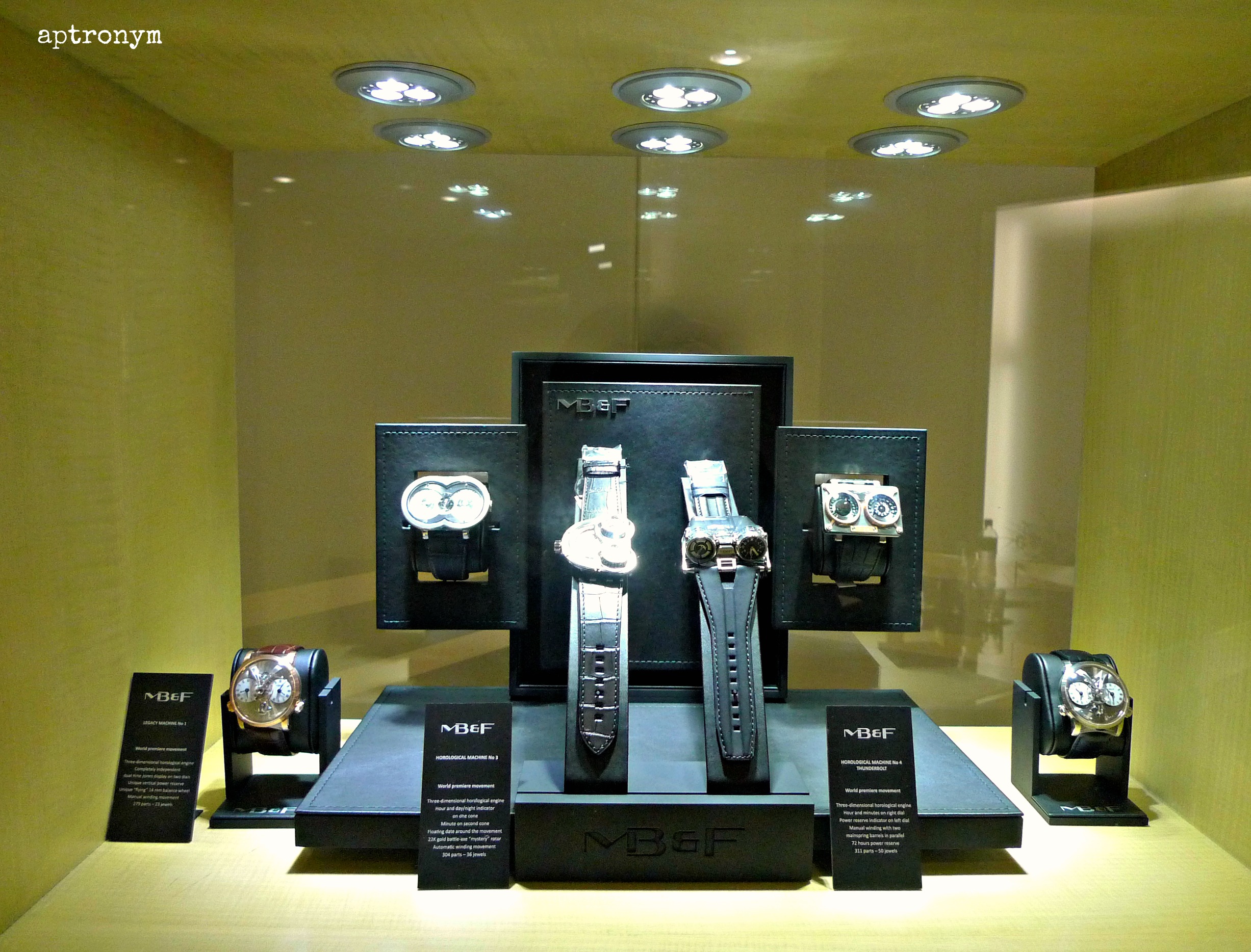 I shall write more about meeting Max later; this first post is to give you a glimpse of six MB&F watches, and to share my thoughts about seeing them for the first time. With such unconventional designs, an important question will always be about wearability, so this will be my main focus.