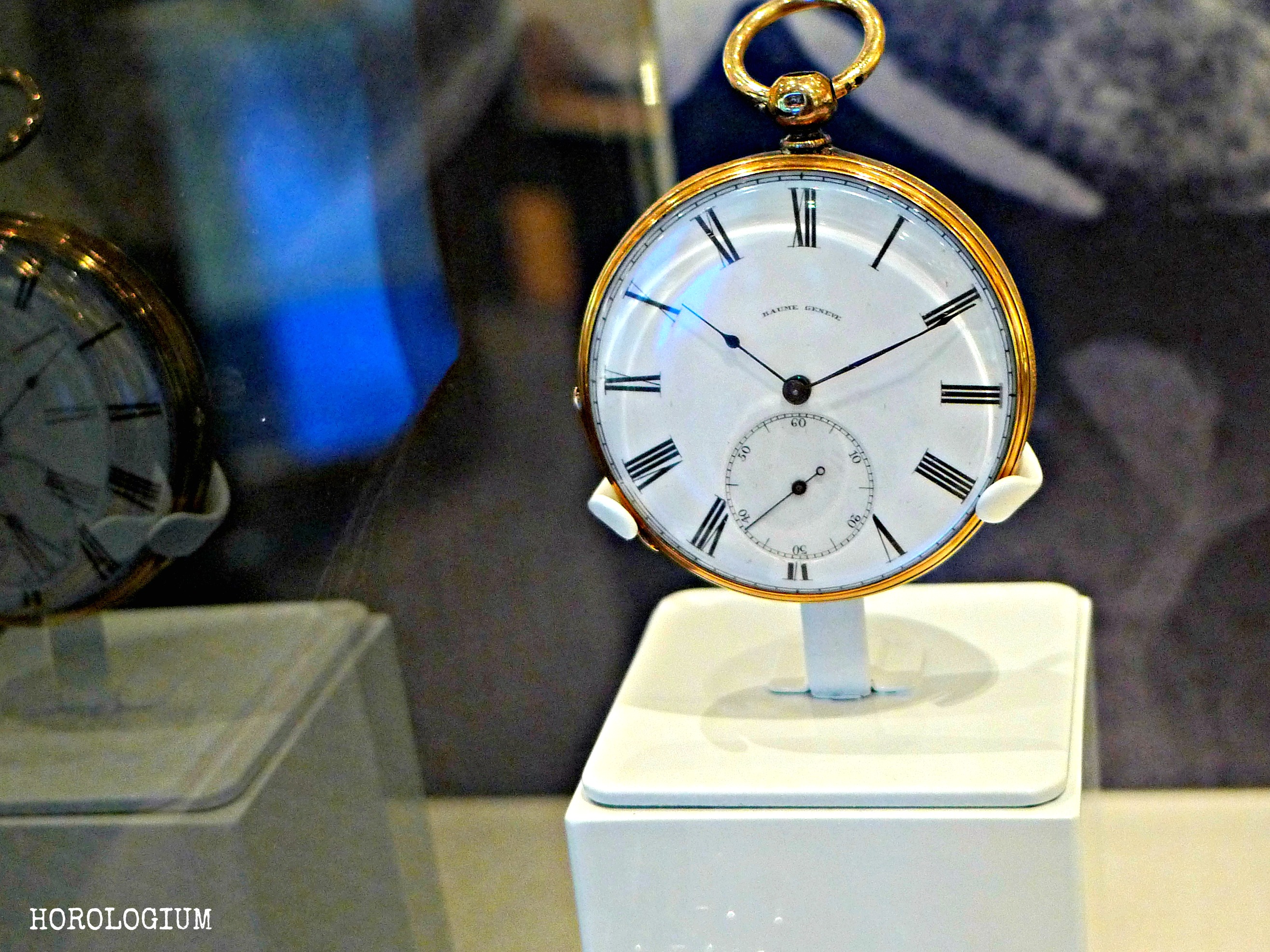 Starting from the left is the oldest item in the exhibition – a beautifully elegant 18k pocket watch with a key wound mechanical movement from 1850.
