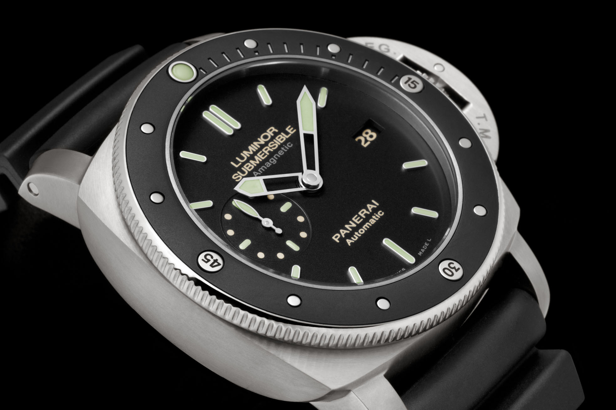 So – initial thoughts are that having something anti-magnetic is a drawcard and makes sense for OP. The black ceramic bezel is a sleek discreet matte, looks great, and is very contemporary. It may also make this 47mm watch feel less bulky (is 47mm the new 44mm for Panerai?), though the use of titanium obviously helps in this regard as well.