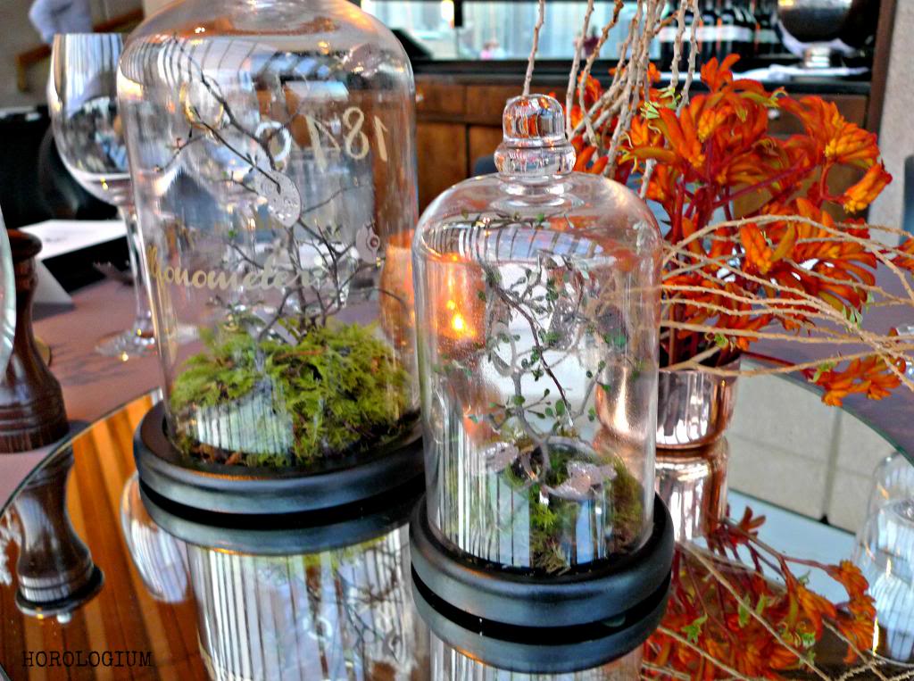 Each table was decorated with especially commissioned table settings– bell jars commemorating Jaeger-LeCoultre’s historical achievements via both text on the jar itself, and in the accompanying decorations inside, such as watch faces. Quirky, unexpected, and educational as well.