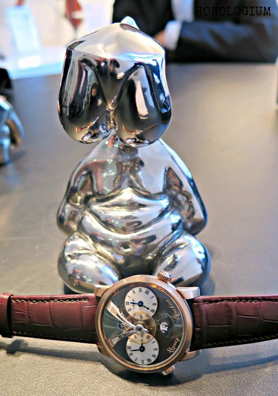 There will be twelve pieces in rose gold and twelve in white gold, priced at CHF 92,000. The creatures are informally called ‘Mr Up’ and ‘Mr Down’ depending on how his power reserve status is going. Each watch sold will come with larger models of Mr Up and Mr Down which are numbered and signed by Xia Hang on the base.