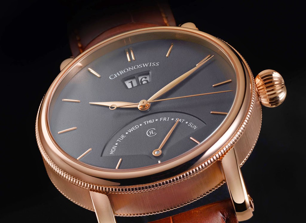 A little while ago Chronoswiss announced the release of a new addition to their Sirius collection for 2014 – the CH 8121 R Retrograde Day. In a 40mm case comprising of twenty-nine parts, this new model uses the automatic Chronoswiss Calibre C.286 movement with a forty-two hour power reserve, a skeletonised rotor with côtes de Genève, and plates and bridges.