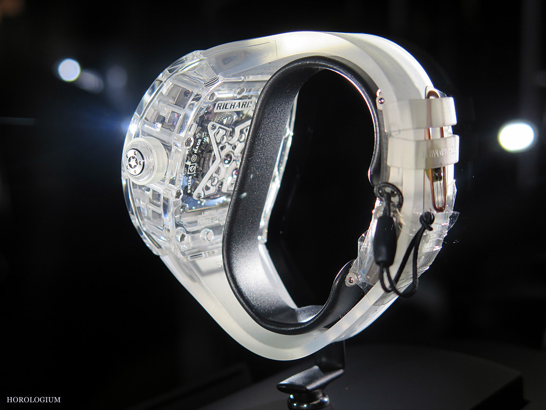 The cases are made with an adapted CNC machine, and it is reputed to take over 900 hours just to complete the casing. The oddly ‘plastic’ looking strap was made in Aerospace Nano® by Biwi SA exclusively for Richard Mille. Unfortunately I did not get to touch it, but the photos give an accurate indication of what it looks like.
