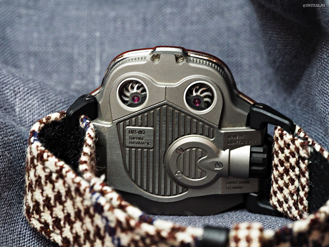 So why tweed? As they tell the tale – it was a case of simply discussing options in terms of tailoring methods, fabrics, durability. They decided on tweed and then, perhaps showing a traditionalist streak that might not be expected in a brand like Urwerk, they went for a Prince of Wales check as worn by the Duke of Windsor and a Chevron tweed. To wear, the straps are incredibly comfortable and make an otherwise very bulky watch sit a lot easier on the wrist, but bearing in mind that it is a woollen strap, it is for Switzerland (or London) in winter, but not so much for an Australian summer…