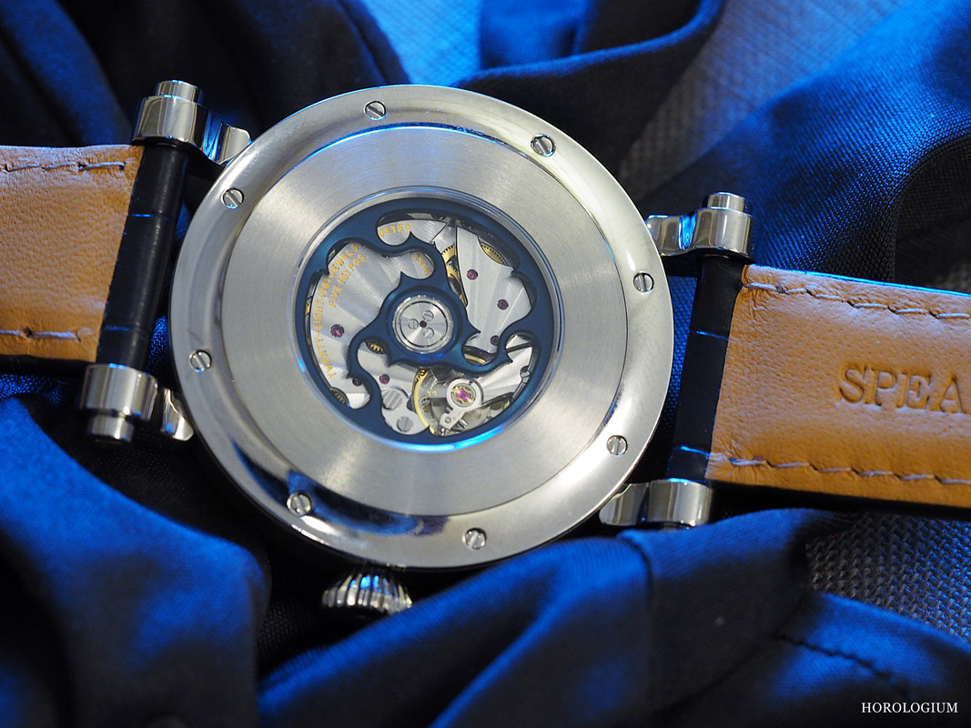 When it was released it was in a stainless steel model, but it is now available in a 42mm (12mm thick) titanium Piccadilly case. Inside is the hand-finished automatic Calibre Vaucher 3002. Peter Speake-Marin is now working closely with Vaucher in terms of movement supply.