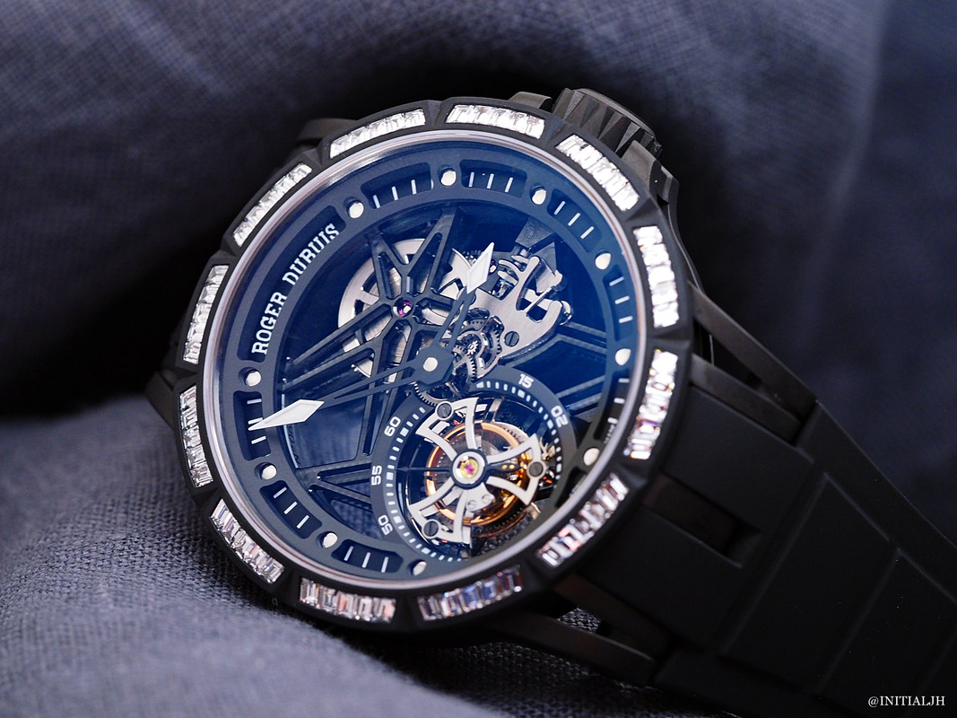 This variation on the non gem-set Excalibur Spider Skeleton Flying Tourbillon may be slightly ‘bold’, but very contemporary and unconventional skeletonised watches are what Roger Dubuis has become known for. There are probably only one or two other big name brands that come to mind who may have attempted something as unusual as a diamond and rubber combination but they didn’t, and the Dubuis method is now patented.