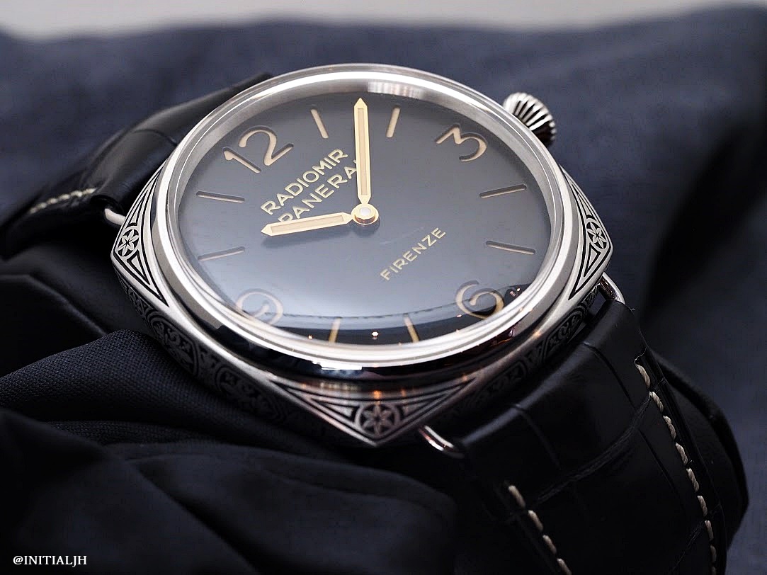 The Radiomir Firenze 3 Days Acciaio comes in a hand-engraved 47mm brushed steel case that has been compared to other engraved sports watches from other brands (a New Zealand brand that itself has perhaps been influenced by Officine Panerai comes to mind) but according to Panerai, these designs are inspired by Florentine motifs.