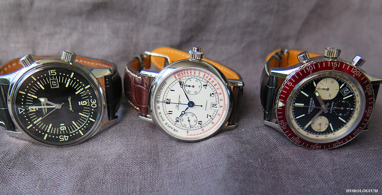 Here is a comparison with another Longines Heritage reissue from a few years ago, the immensely popular and very attractive Legend Diver, and the the Pulsometer re-issue about which I wrote here.
