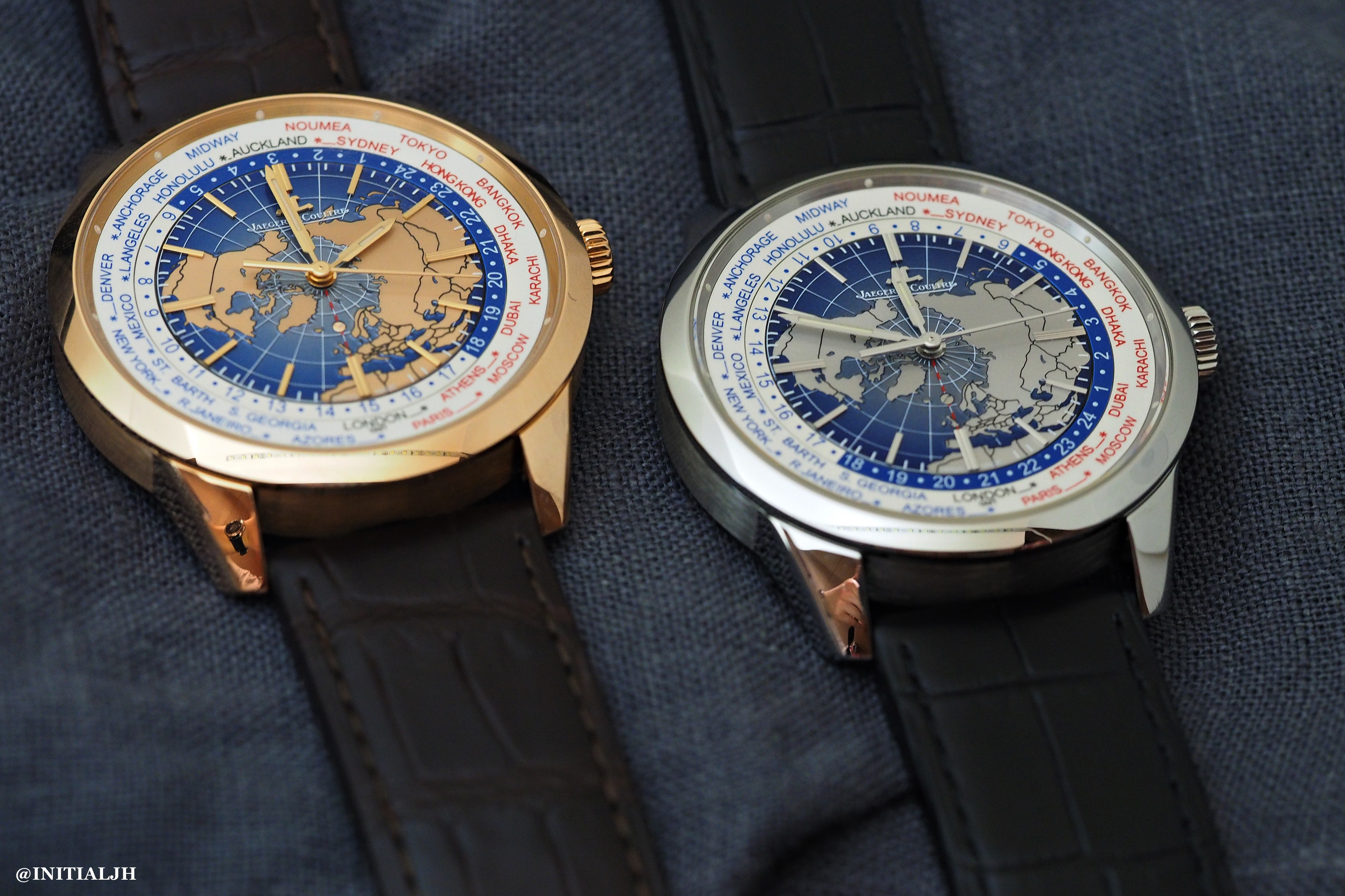 The Universal Time shares the same basic movement (both with a 40-hour power reserve) and case design, but despite the added world time complication (making it Calibre 772, with a thickness of 7.13mm versus the 770’s 6.57mm height), the watch’s height is minimally larger, at 11.84mm as compared to 11.8mm for the True Second. The Universal Time case, however, is 1.5mm larger than the True Seconds, with 39.6mm for the True Second and 41.6mm for the Universal Time.
