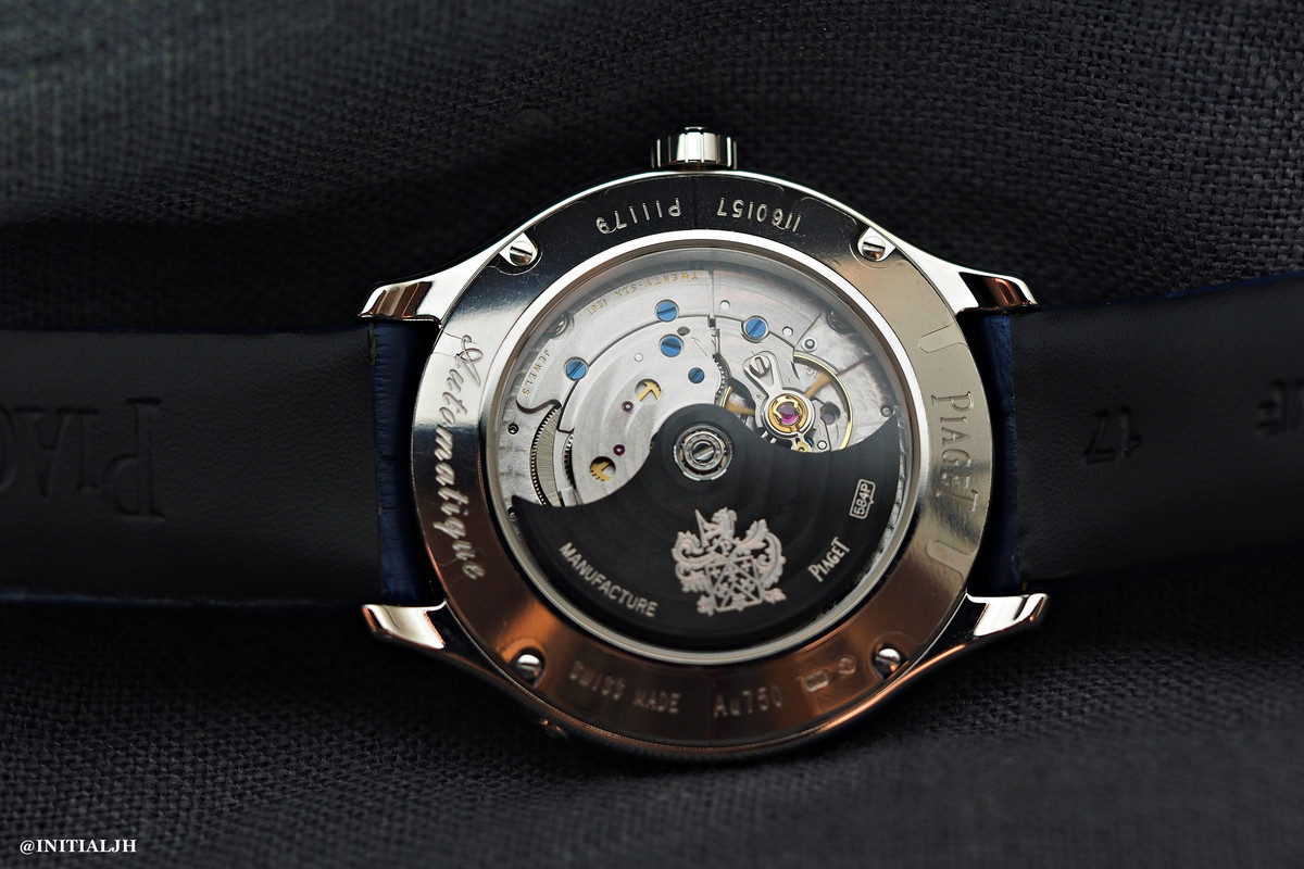 This new Calibre 584P has a 42-hour power reserve, is 21,600VPH, a circular-grained mainplate, bevelled bridges, blued screws, circular Côtes de Genève, and the Piaget coat-of-arms on the oscillating weight.