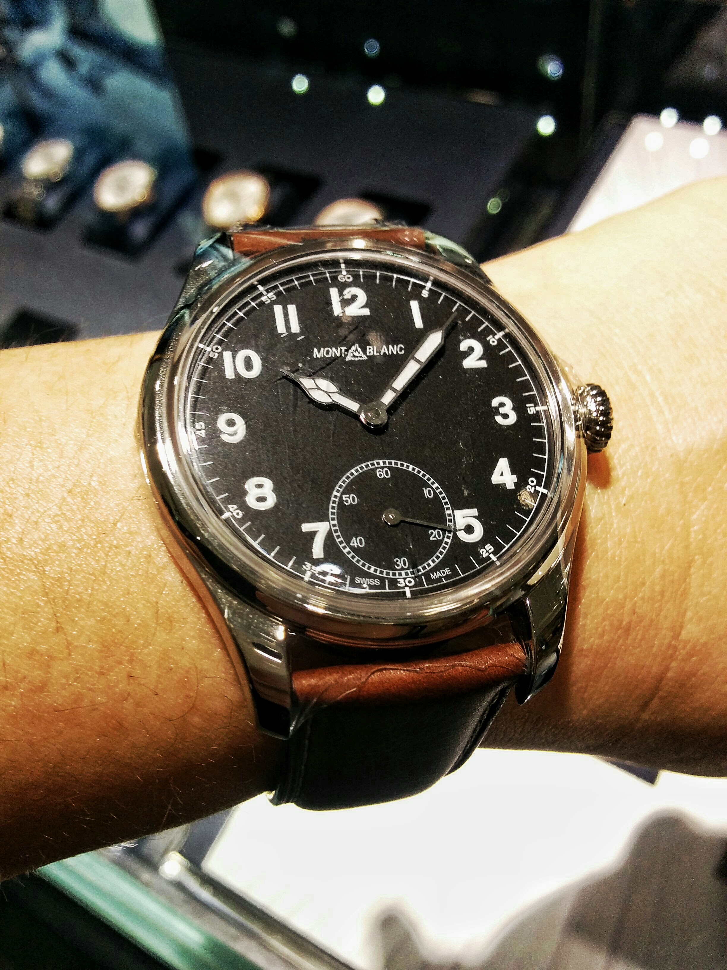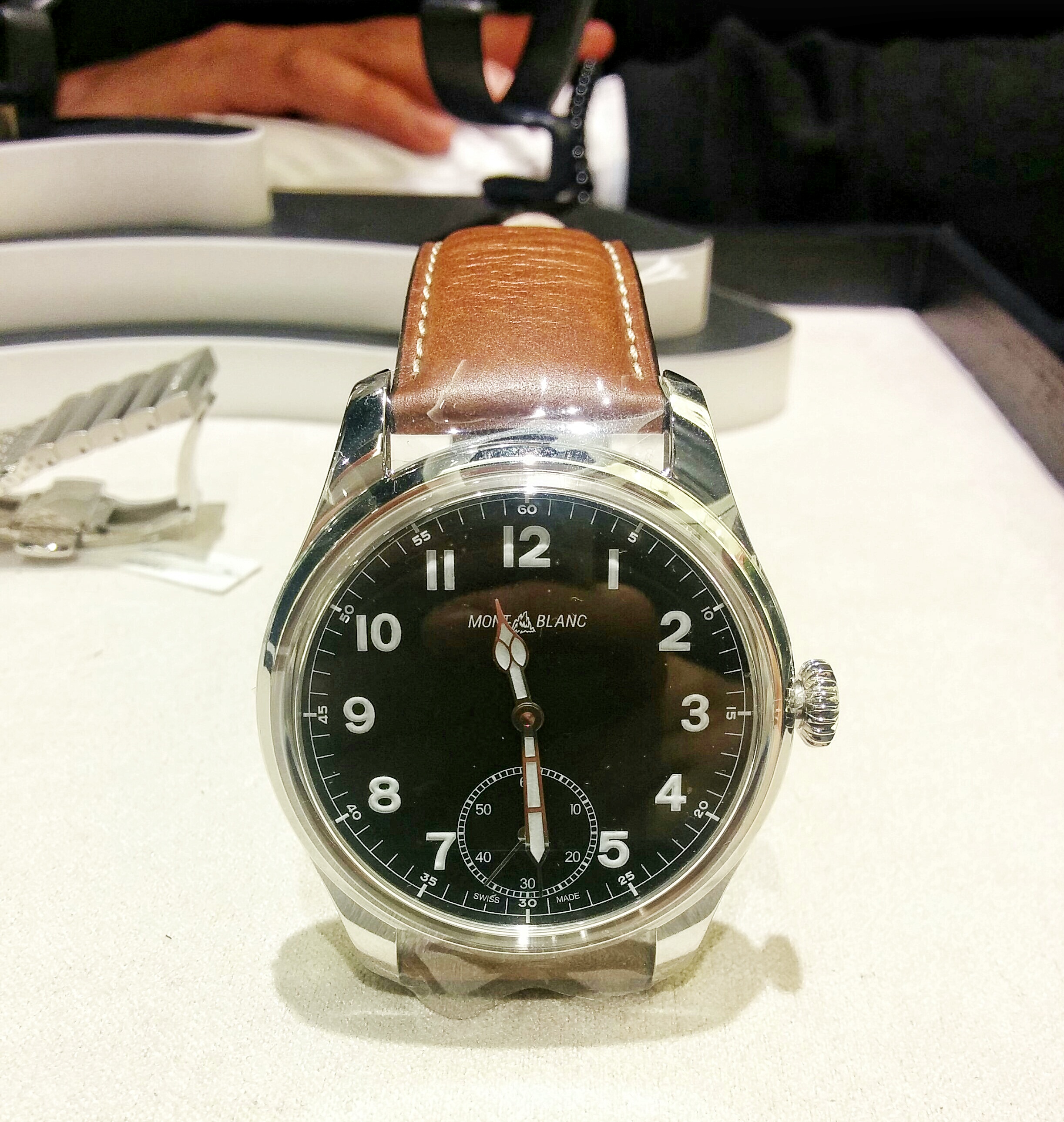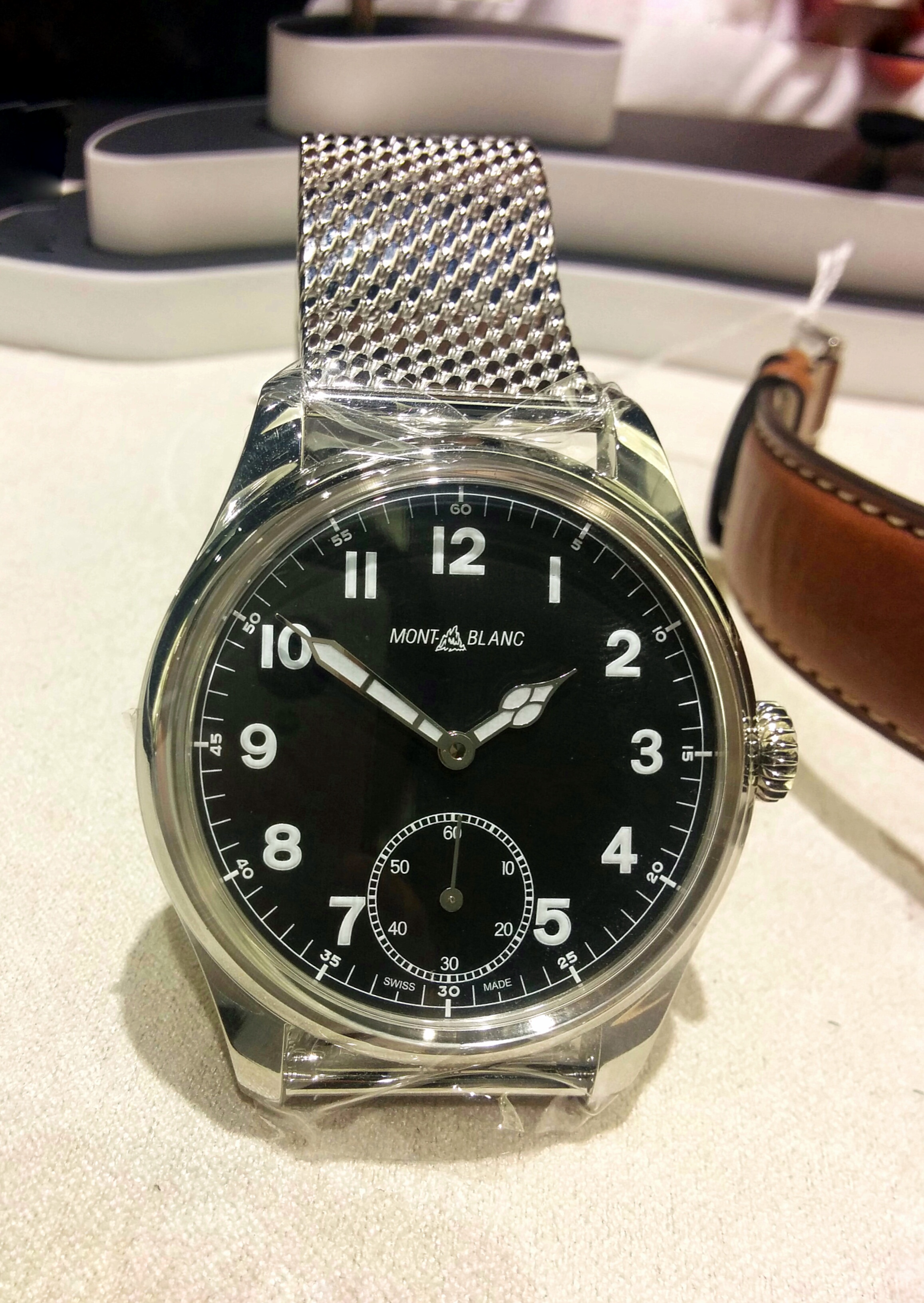 Although purportedly slated for a Mexico release and not on display in Montblanc’s booth at the fair, the new Montblanc 1858 Collection pilots’ watches (aka the 1858 Collection Small Seconds, of which there are limited and production models) which had already been seen by some turned out to be already available, in Hong Kong and Paris boutiques. Perhaps others in other countries as well?