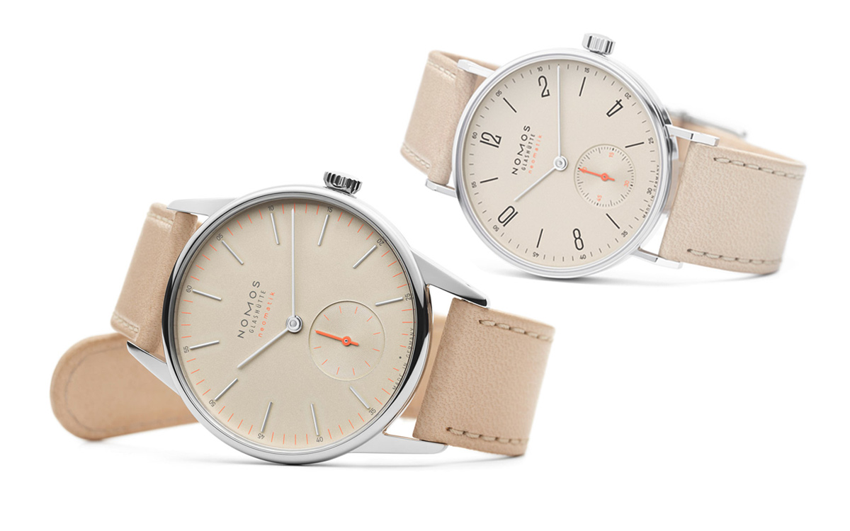 These new watches are based on five existing Nomos families – Tangent, Orion, Ludwig, Metro and Minimatik, but what it does is to release them in both the traditional white silvered Nomos dial with cyan blue, and a new champagne dial with neon orange. These ten new neomatiks ven come complete with their own website.