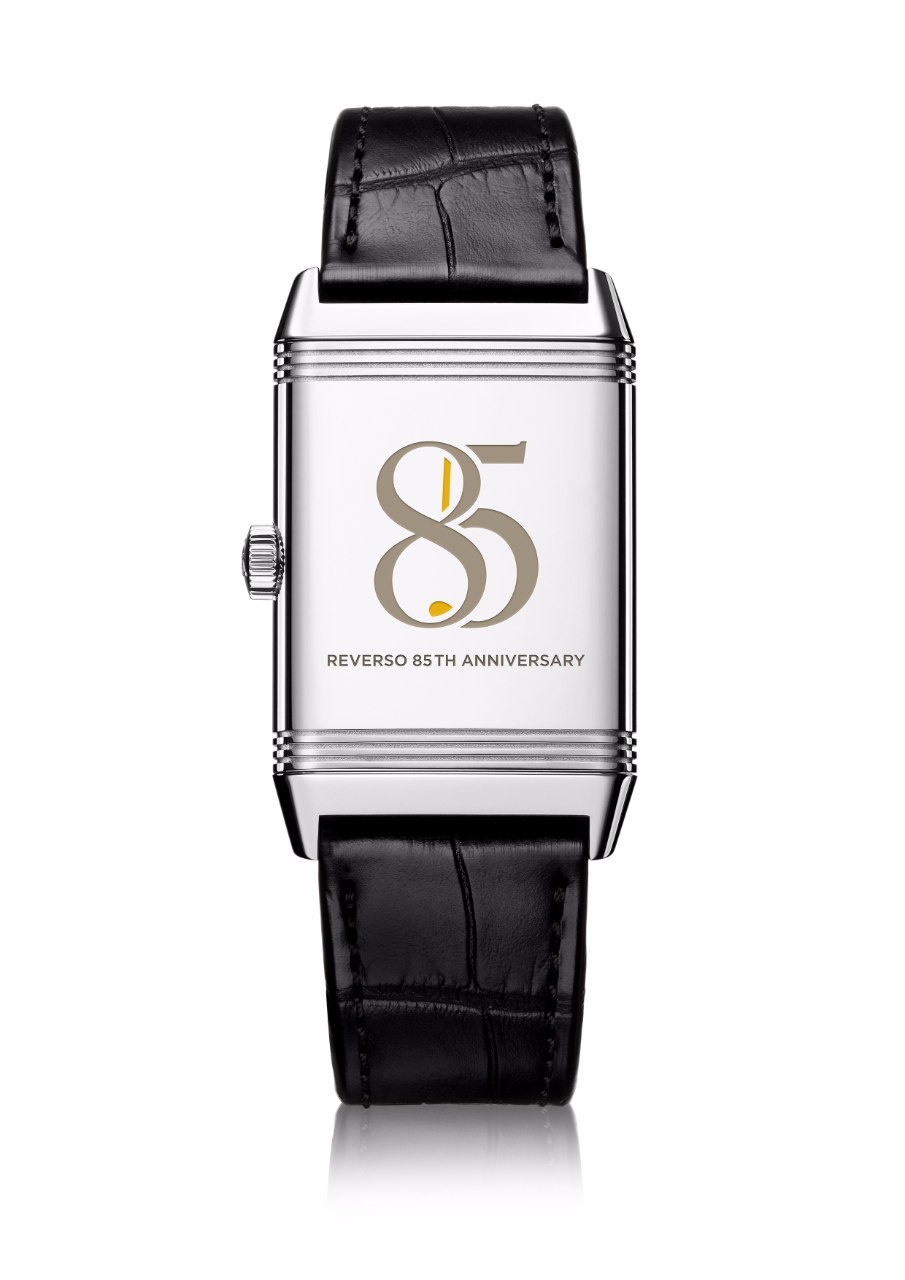 The dial side is silver-brushed with guilloché, and heated blue hands. The verso is solid, with the usual Reverso engraving option available to you. Jaeger-LeCoultre have done an 85th themed one as an example.