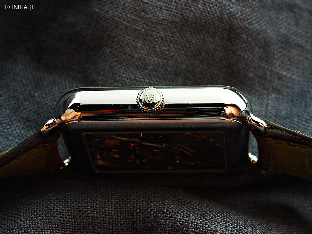 Inside is something that doesn’t have an inbuilt obsolescence – the in-house manual wind Calibre HMC 324 (18,000 VPH) with hacking seconds and four days of power reserve (a power reserve indicator is visible on the back). This is a movement that measures 32.0mm x 36.0mm x 4.80mm, made to fit snugly into the case, and hand finished and decorated.