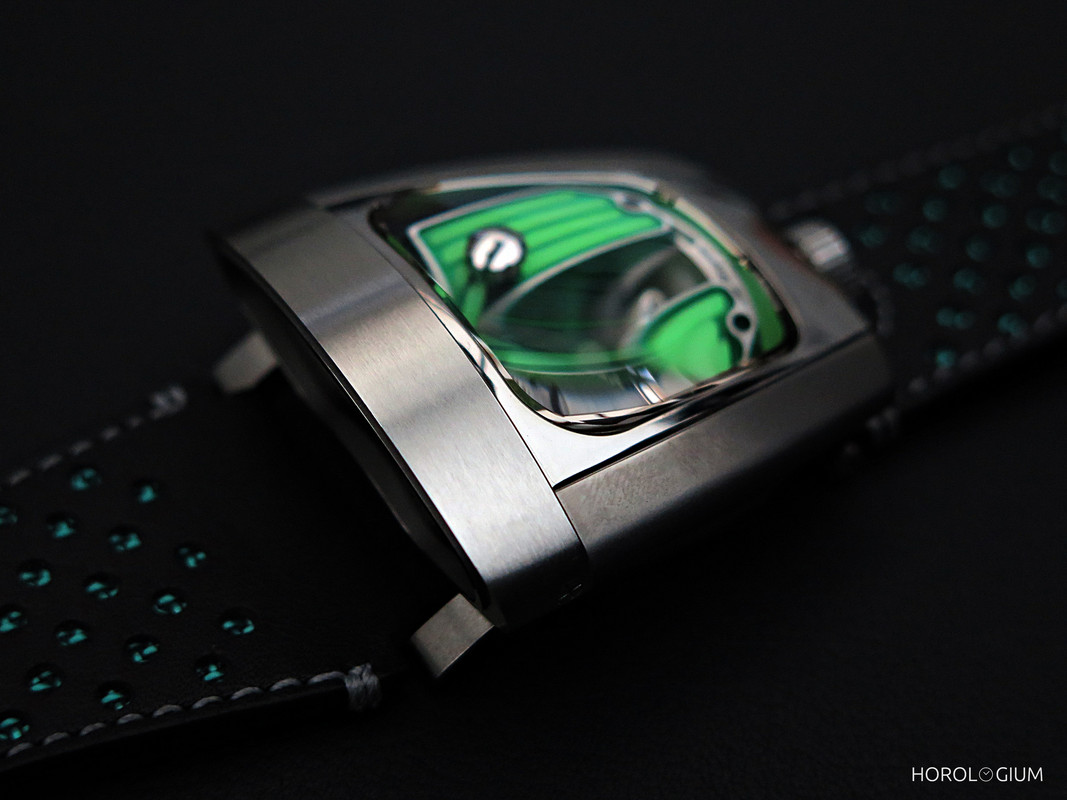 You may recall MB&F’s HMX, part of their 10th birthday celebrations in 2015. They decided to follow this up with a collaboration with Jack Thompson (aka ‘Black Badger’ on Twitter and Instagram), best known for his distinctive luminescent rings, milled out of blocks of luminous material.