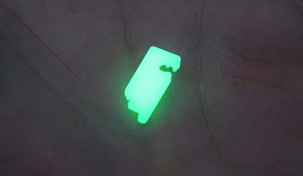 Black Badger’s coloured luminous material with its long-lasting glow is visible during the day but it is by night that it comes into its own. Super-LumiNova is a liquid that is applied to surfaces and dries, whereas as mentioned at the outset, Black Badger’s lume comes in blocks (as per the photo below) that are milled by hand or machine. Super-LumiNova is also present in these watches along the flanks of the case, for contrast.