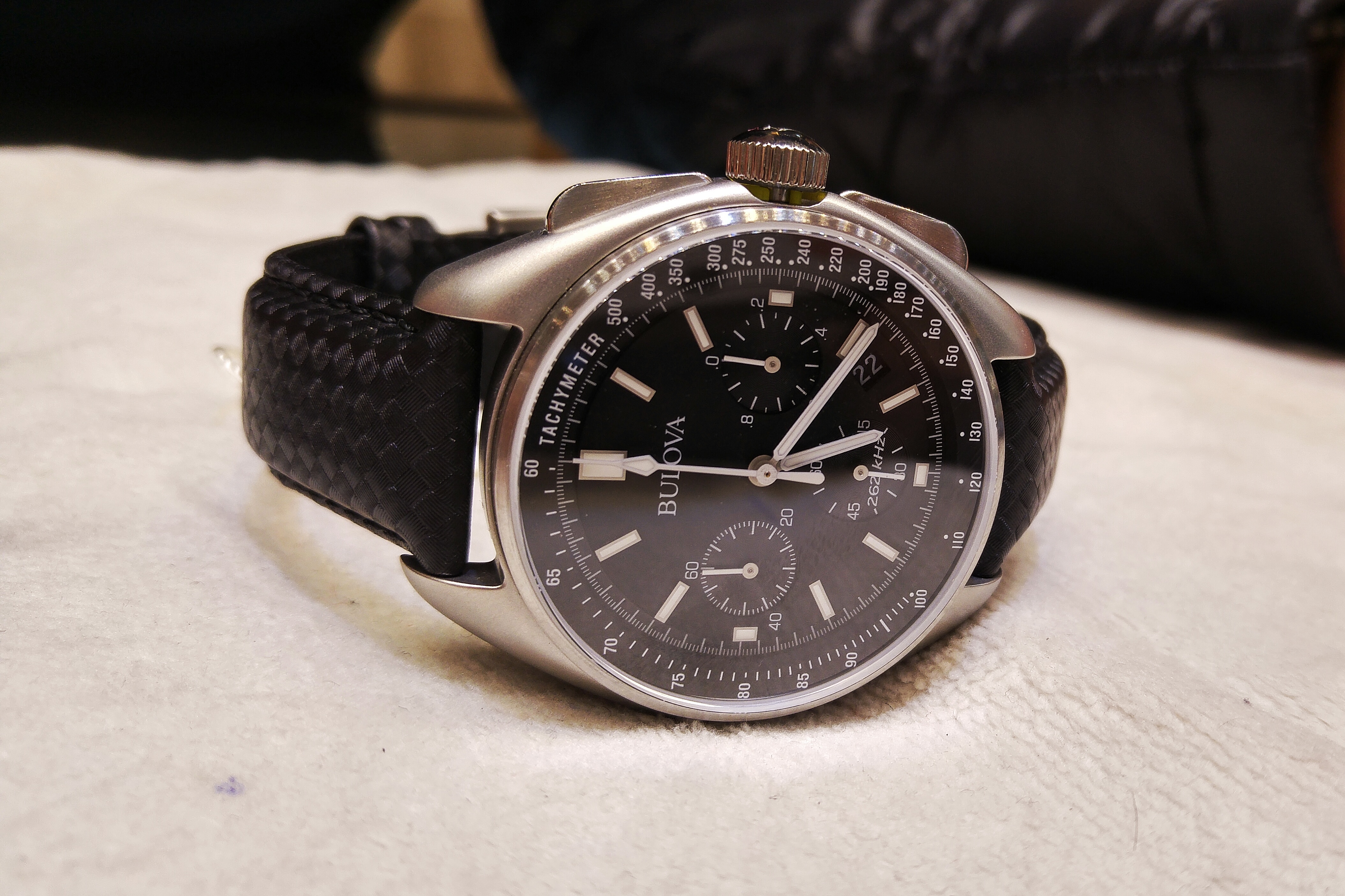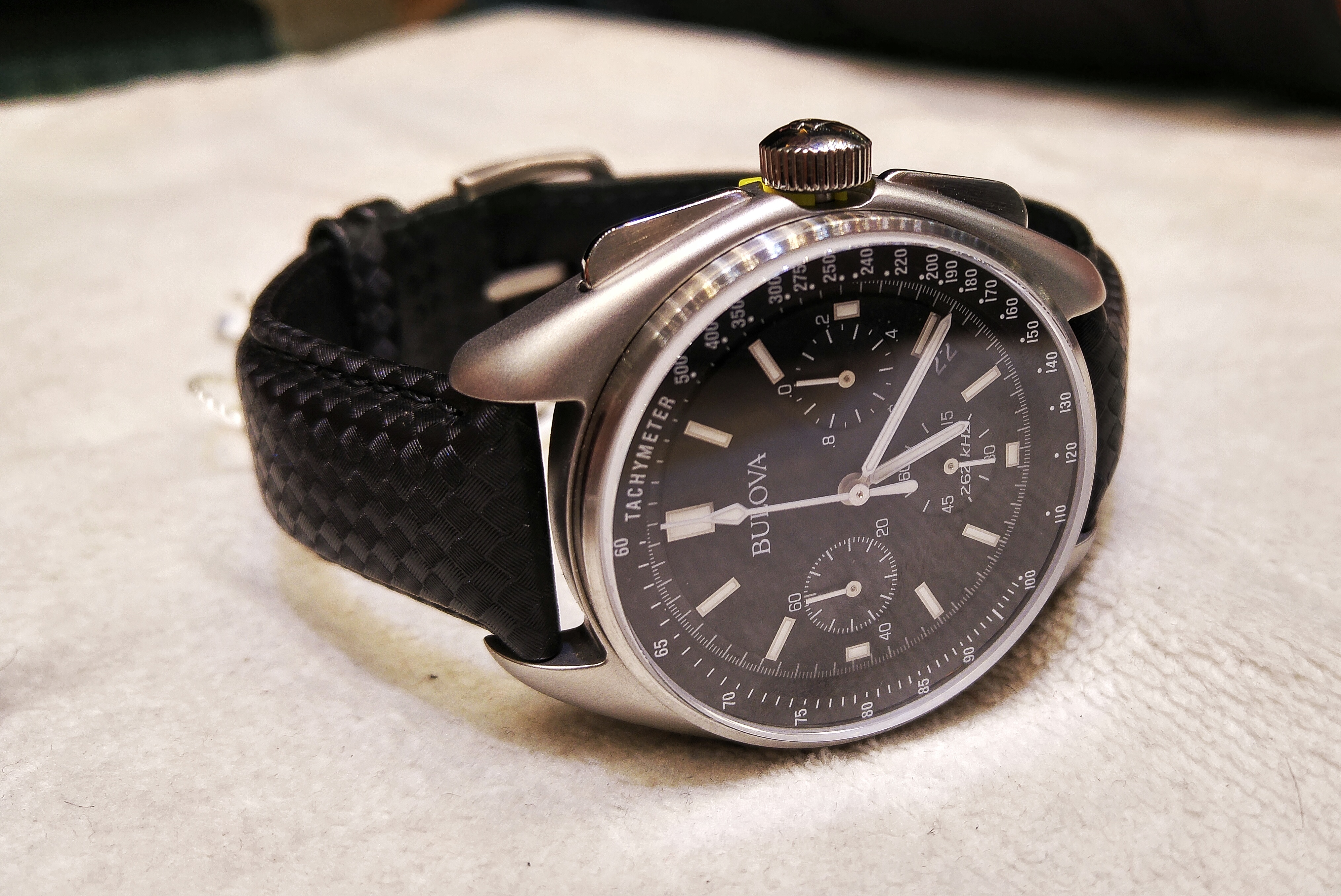On the new watch you can see the “262 KHz” on the dial. Bulova (owned by Citizen) has been releasing a number of UHF-powered watches, with the frequency stated on the dial.