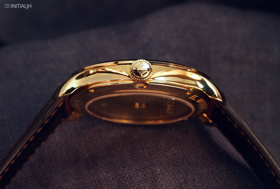 The one we saw was a prototype with a back that wasn’t indicative of the final watch, but in the actual watch there is an open case back through which you can see the in-house manual-wind Calibre HMC 321 that beats at 18,000VPH with a power reserve of 3 days. The movement is fitted with 27 jewels, original Straumann Hairspring with stabilised Breguet overcoil, pallet fork and escapement wheel made from gold and a power reserve indicator. As well, ‘LIMITED 100 PCS’ will also be engraved on the movement side.