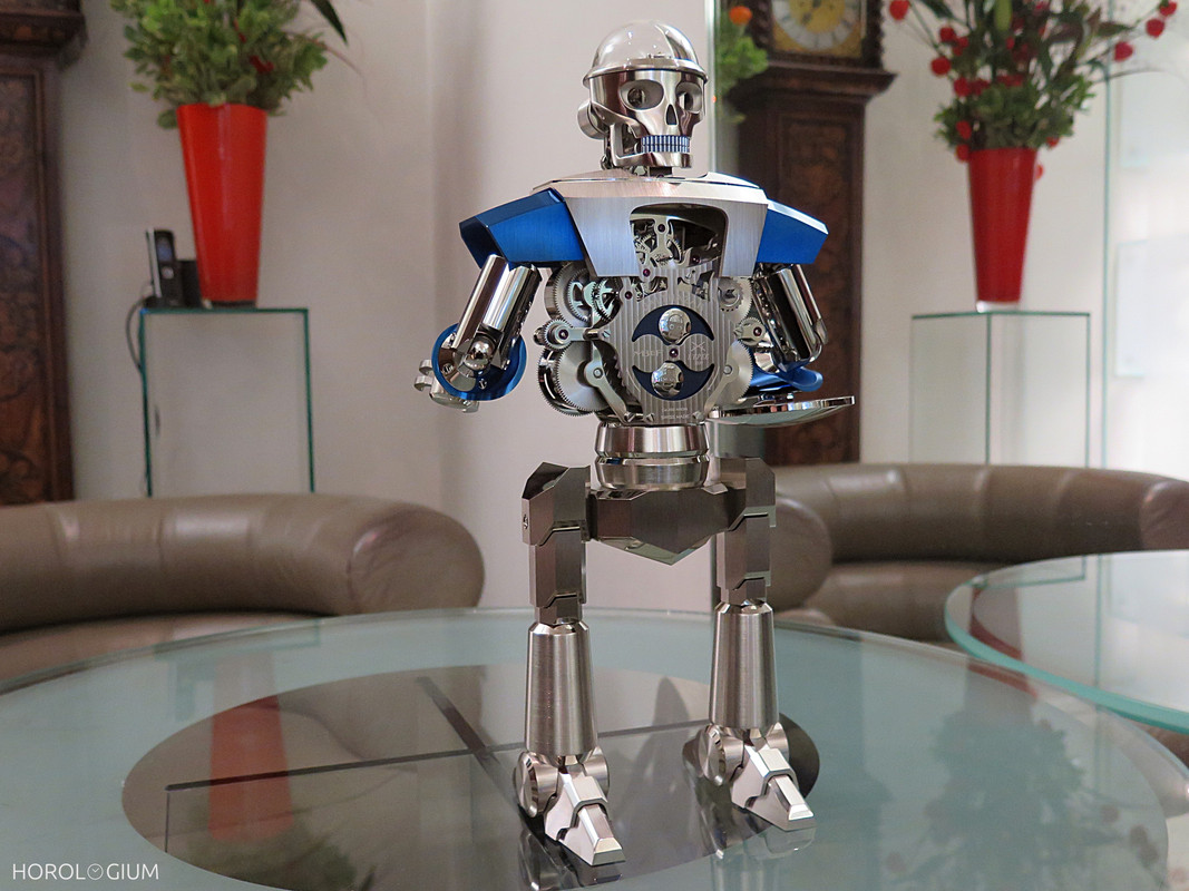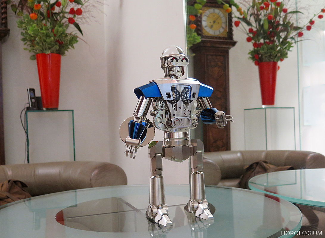 He is every bit as impressive as you imagine just from photos, and significantly taller than his robot-clock predecessor, Melchior. Next to him Sherman, MB&F’s endearing creation from last year, seems even more petite.