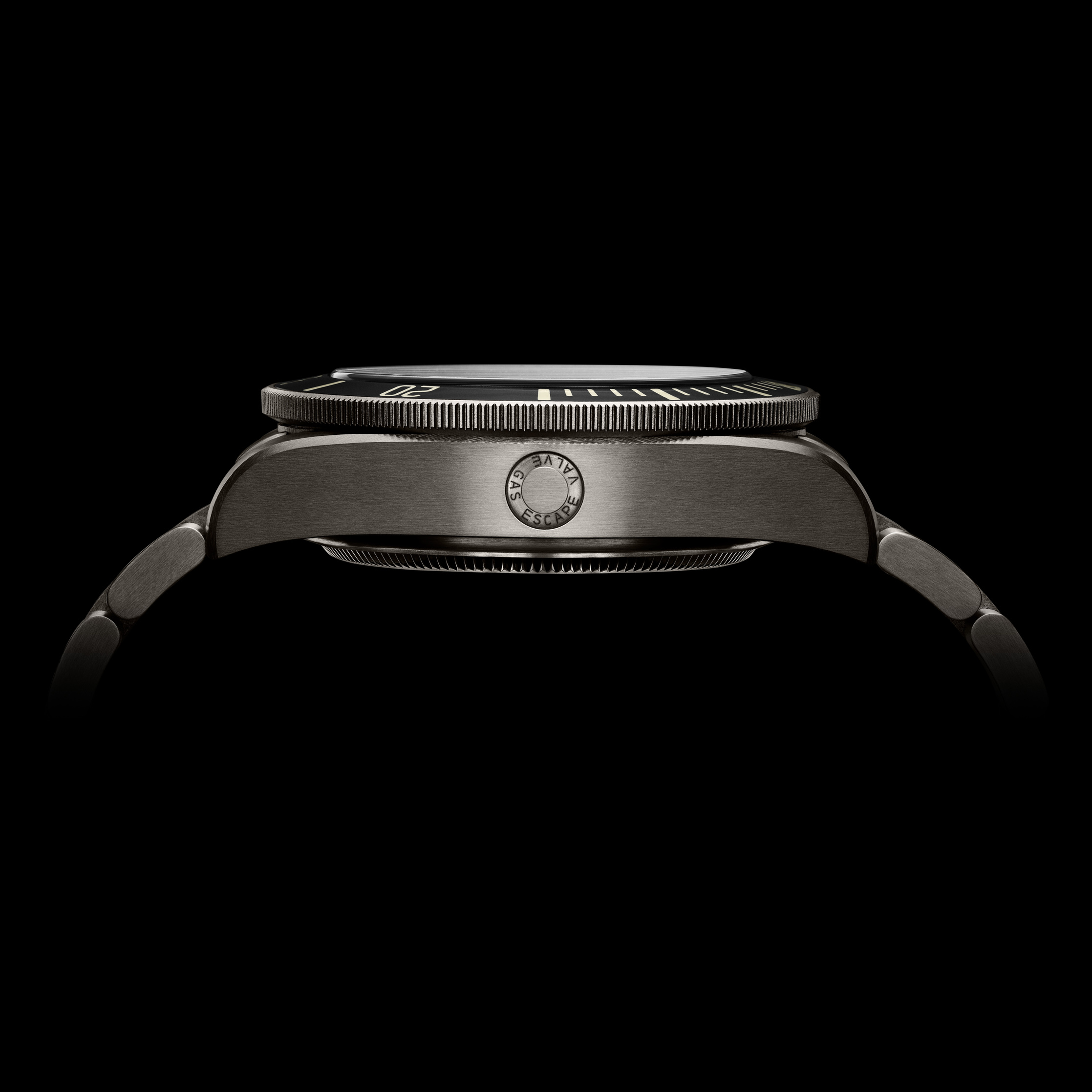 The 42mm of the new LHD is in Grade 2 titanium with the same unidirectional bezel with a 60-minute ceramic insert. Water resistance is 500m and there is a helium escape valve.