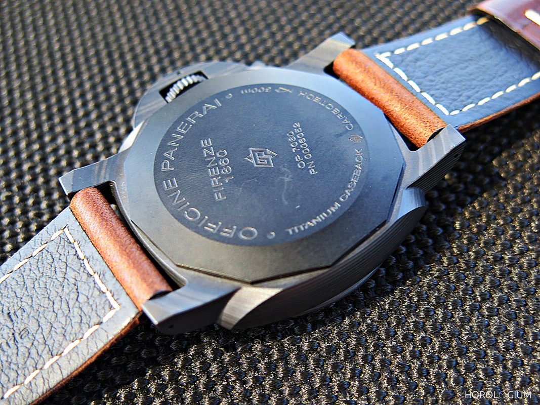With a water resistance of 300m, this may be a watch with a Carbotech case but this does not extend to the back, which is titanium. This was also the case for the PAM616.