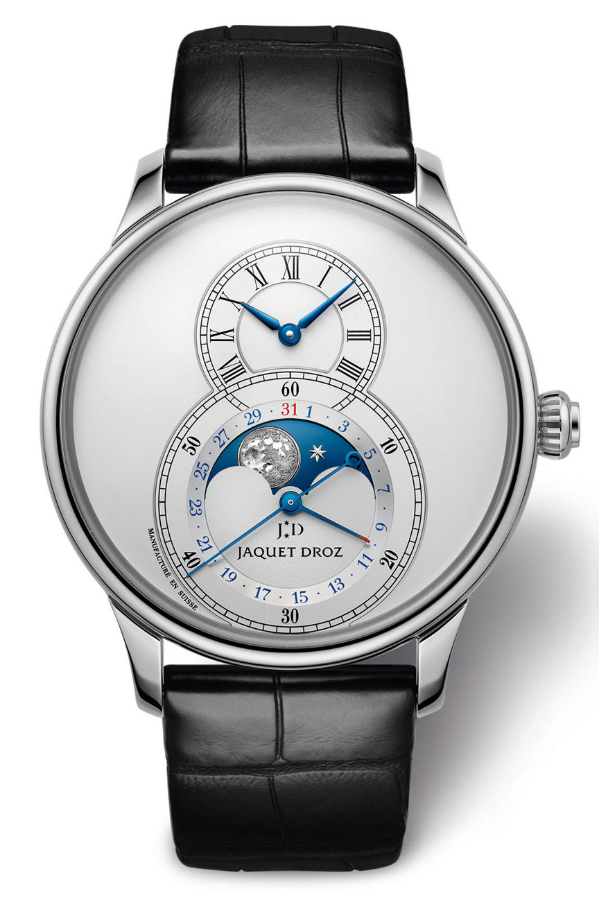 There is a new member of the lunar club fraternity – Jaquet Droz have released an addition to their classic Grande Seconde Collection in the form of a watch with both date and moon phase two different variants – stainless steel or 18kt red gold 43mm sized cases.