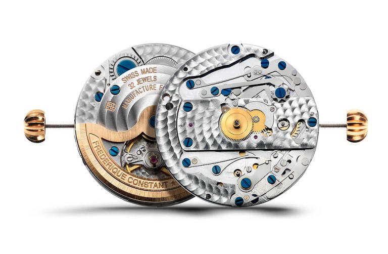 The new automatic FC-760 adopts a modular construction. The flyback module is attached to the base movement, Caliber FC-710. Comprising of 233 components (of which 96 are dedicated to the flyback module), it has a 38 hour power reserve and beats at 28,800 VPH. It features perlage and circular Côtes de Genève decoration.