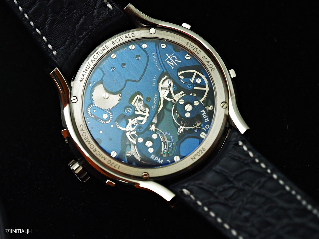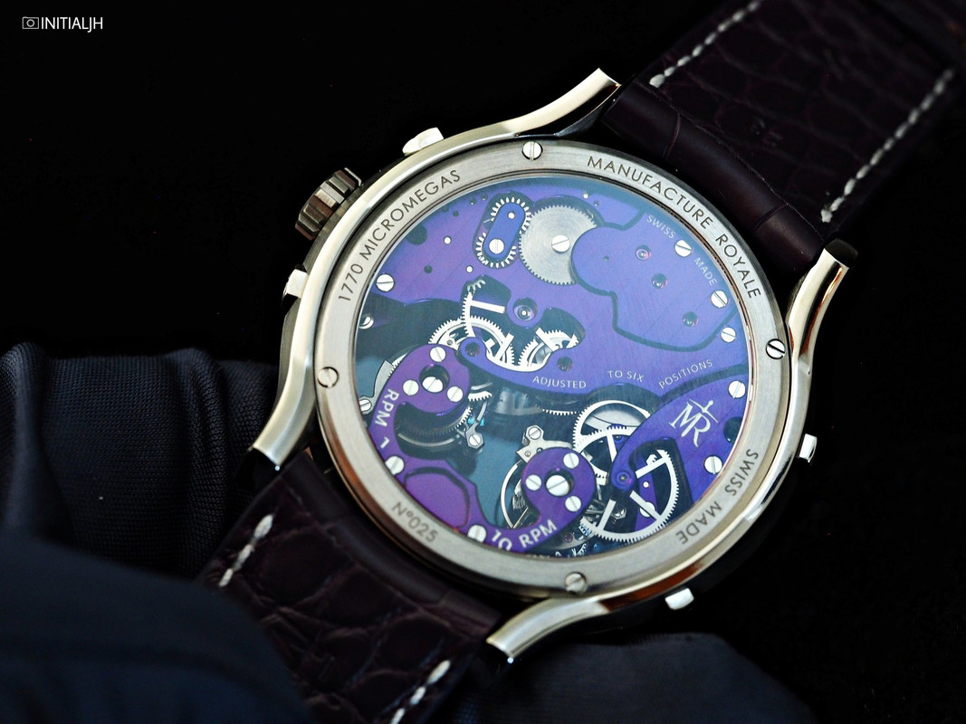 Behind the sapphire case back is the in-house automatic Calibre MR08 with 40 hours of power reserve. As mentioned earlier, the ‘Micro’ of the name beats at 28,800VPH (4Hz) and the ‘Mégas’, at 21,600VPH (3Hz).