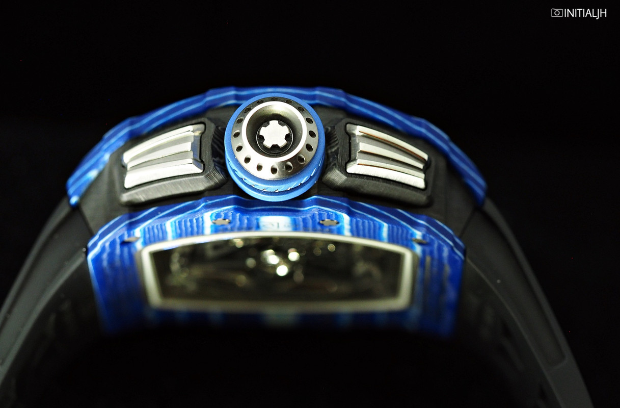 Today is about the RM 11-03 Jean Todt 50th Anniversary, which is is based on Richard Mille’s RM 11-03 flyback chronograph but with a very distinctive exterior – a blue and white variant of the Quartz TPT™ (‘Thin Ply Technology’, from creators Thin Ply Technology) material which Richard Mille introduced in 2016 in a red via the RM 27-02 Tourbillon Rafael Nadal. This composite is created by stacking together 600 layers of silica each 45 microns thick, which is then impregnated with a blue resin before being heated to 120 °C then machined. What you get at the end is an extremely light and tough case, two features that are central to Richard Mille’s product ethos.