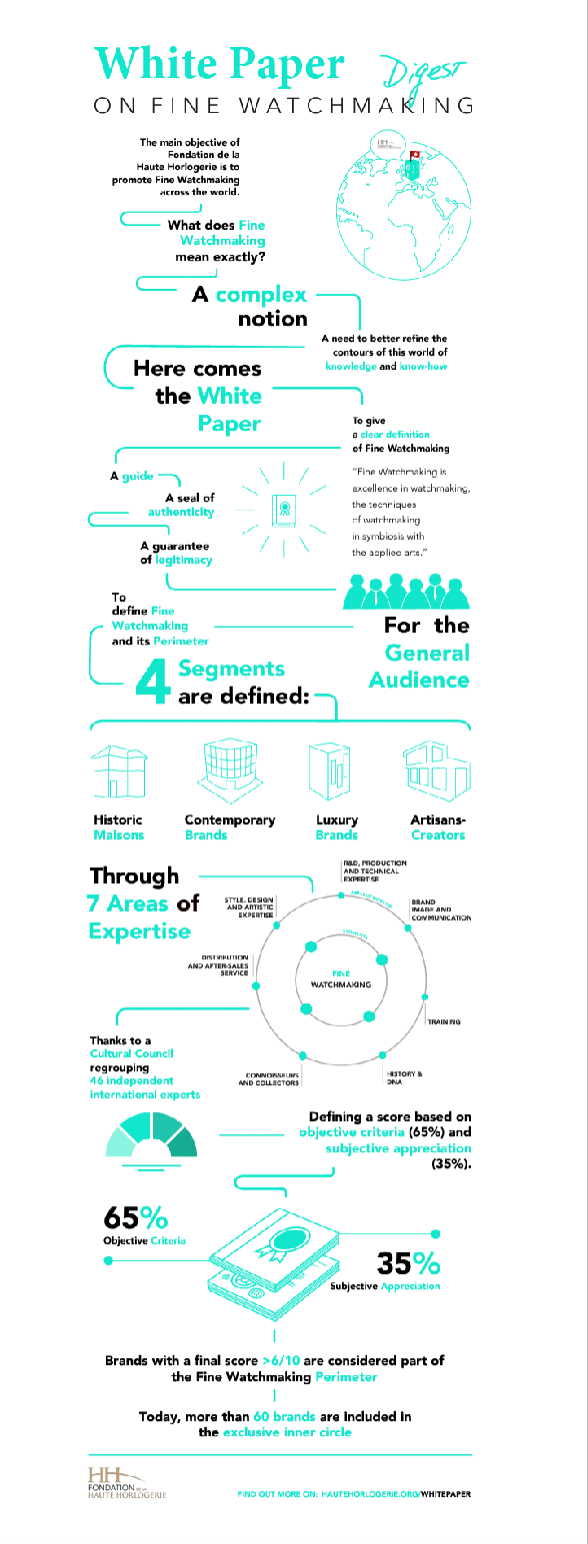 Well the Fondation de la Haute Horlogerie (FHH) has given its answer this question, and recently launched the English version of their White Paper on the topic.