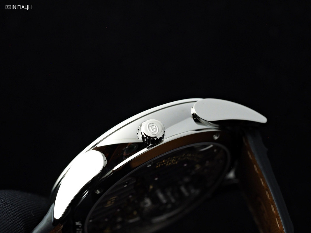 Like the standard base Tonda 1950, the Tonda 1950 Lune has a 39.1mm diametre case. However, with the addition of the complication module has come an extra 2mm of thickness, making it 9.6mm thick. To ensure balance for this thicker case, the crown’s size has also been slightly increased. It being Parmigiani, the watch comes on an Hermès alligator strap.