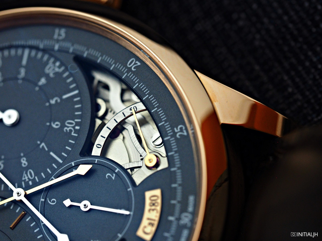 Today we are sharing with you some photographs of the new Duomètre Chronograph Magnetite, powered by the manual-wind Calibre 380. The second of the ‘duo’ functions for this is, of course, a chronograph. If you’ve ever had a play with this watch in its previous incarnations you will know how interesting the 1/6 second jumping seconds feature of the chronograph function is, although for those unaccustomed to it, it can require some mental realignment.