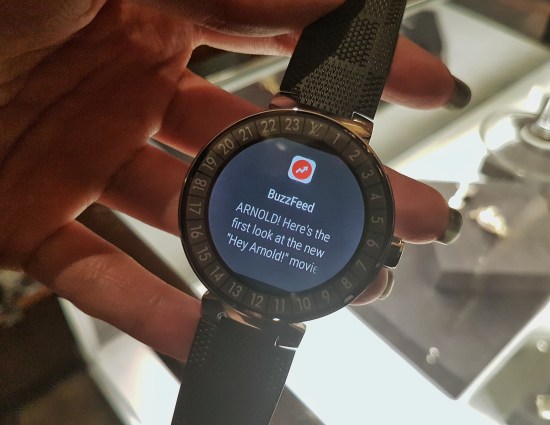 It has a 1.2-inch, 390 x 390 resolution AMOLED touchscreen display and runs on Android Wear 2.0. It uses the same Qualcomm Snapdragon 2100 processor behind the LG Watch Sport, has 512MB of RAM, and 4GB of storage. Connectivity wise there’s Bluetooth and wi-fi of course, and it is all powered by a 300mAh battery that I was told will last for about a day on ‘normal usage’ before requiring charging.